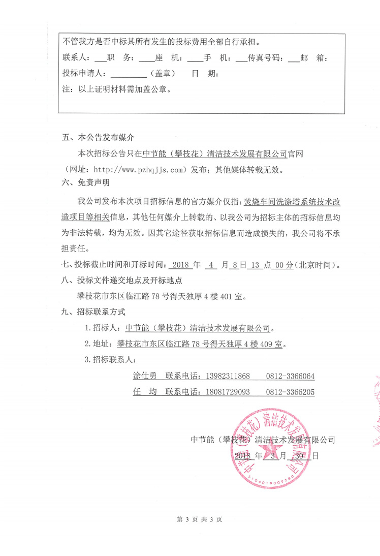 焚燒車間洗滌塔系統(tǒng)技術(shù)改造項(xiàng)目招標(biāo)公告